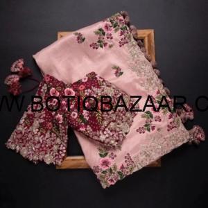Onion Pink Embroidered Kaftan Suit with Inner Slip