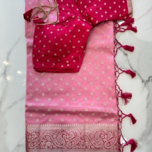 Soft Warm Silk Butta Light Pink Color Saree with Stitched Blouse and Pico(Fall)