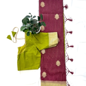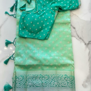 Soft Warm Silk Butta Pista Green Color Saree with Stitched Blouse and Pico(Fall)