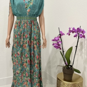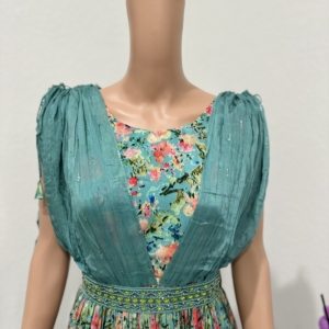 Turquoise Chinnon Embroidered Floral Dress For Women