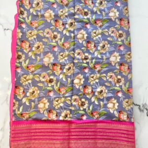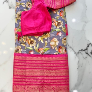 Floral Print Japan Satin Silk Saree with Stitched Blouse and Pico(fall)