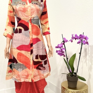 Orange Chinnon Fabric with Maggam Work Dhoti Style Kurta Set