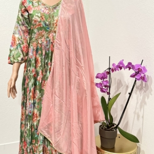 Green Color Floral Alia Cut Maggam Worked Kurta Set (XL)