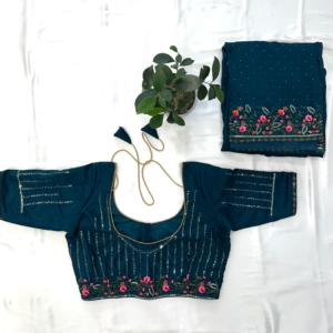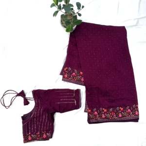 Chiffon Embroidary Saree with Stitched Blouse and Pico(Fall)