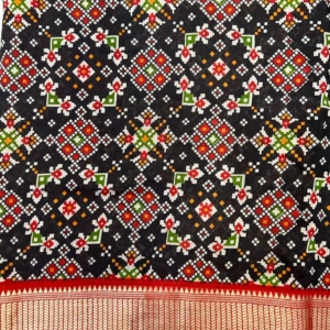 Crepe Silk Ikkath Black and Maroon Saree with Stitched Blouse