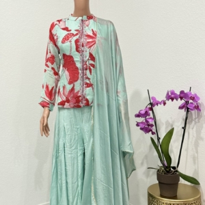 Light Turquoise Indo Western Plazzo Set For Women