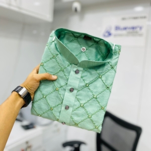 The Pure Heavy Cotton Slub With Embroidery Mirror Work Kurta Using To Attain This Bright Colours