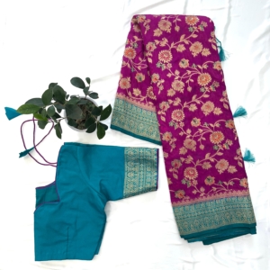 Pure Banaras Georgette Saree with Stitched Blouse and Pico(fall)
