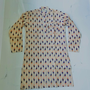 -> Orange and Blue Design on Cream Color Kurta -> Size 40(M)