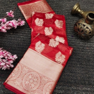 Fabric :- A party wear saree that gives Glamour look of your beauty by Soft Organza Silk fabric With Rich Golden Zari Woven Pallu & Zari weaving l Border With Lehenriya weaving all over the Saree with Designer Brocade Silk blouse