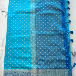 Soft Warm Silk Butta Copper Sulphate Blue Color Saree with Contrast Dark Dark Blue Color Border and Pallu